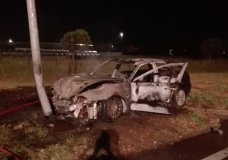 THIENE- Si schianta contro un palo, auto in fiamme: multato
