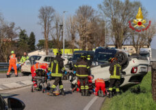 Vicenza, scontro in Strada Marosticana: auto rovesciata, due donne ferite