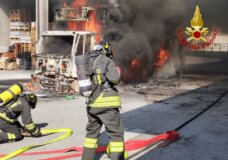Veneto – Camion frigo in fiamme all’interno di un’azienda di frutta