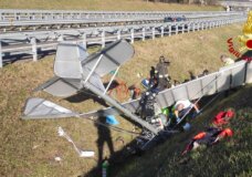 Aereo ultraleggero cade sull’A31: pilota gravissimo, tragedia evitata per un soffio