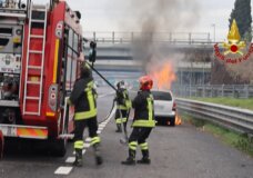 Auto a fuoco in A4: miracolato conducente. Il video dell’intervento dei pompieri