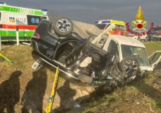 Vicentino – Auto tamponata si rovescia: ferita la conducente