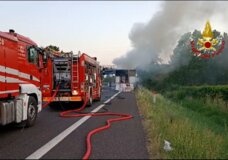 VENETO – Paura in A13: a fuoco autoarticolato (video)