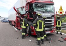 Paura in autostrada a Vicenza: scontro fra due camion (VIDEO)