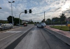 MONTECCHIO – Scontro all’incrocio a semaforo lampeggiate: auto finisce sul cordolo