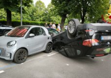 Vicenza, auto finisce rovesciata in centro (FOTO)
