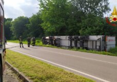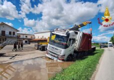 Montebello – Camion finisce in una canaletta e rischia di rovesciarsi