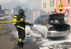 Mercedes prende fuoco in centro paese: autista si salva in tempo