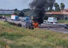 Paura in autostrada: camion a fuoco, traffico bloccato (video e foto)