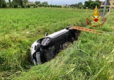 Auto finisce fuoristrada rovesciata: estratta una donna ferita (FOTO)