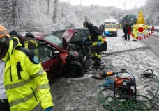 VENETO – Neve abbondante in montagna: pompieri recuperano auto finite fuori strada (foto)