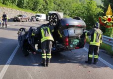 VENETO – Frontale in Alemagna: auto cappottata e 3 feriti