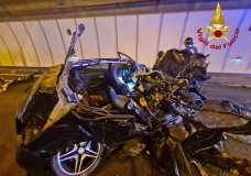 A4 Vicenza Ovest – Pauroso scontro tir-auto in galleria all’alba (FOTO)