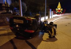 Auto si rovescia in rotatoria: 1 ferito