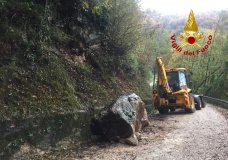 ALTO VICENTINO – Enorme masso cade su strada