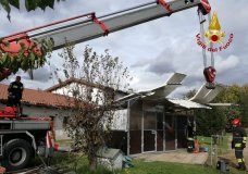 NOVENTA – Forte vento fa cadere box cavalli su un’abitazione