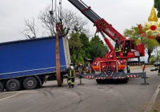 Manovra errata e il camion si blocca in curva