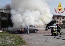 ALBETTONE – Fiamme in centro, auto a fuoco