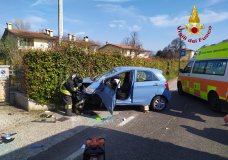 Noventa Vicentina, auto centra scuolabus e finisce nel fossato: automobilista in gravi condizioni