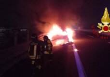 Veneto – Paura in A4 nella notte: auto a fuoco