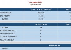 Ulss 8 Berica – 1 positivo su 1000 tamponati, i ricoverati scendono a 24