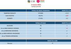 Ulss 8 Berica – Più di 100 positivi su quasi 4mila tamponi, 1 decesso