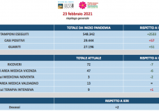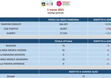 Ulss 8 Berica – Nessun decesso, i nuovi positivi tornano a superare i guariti