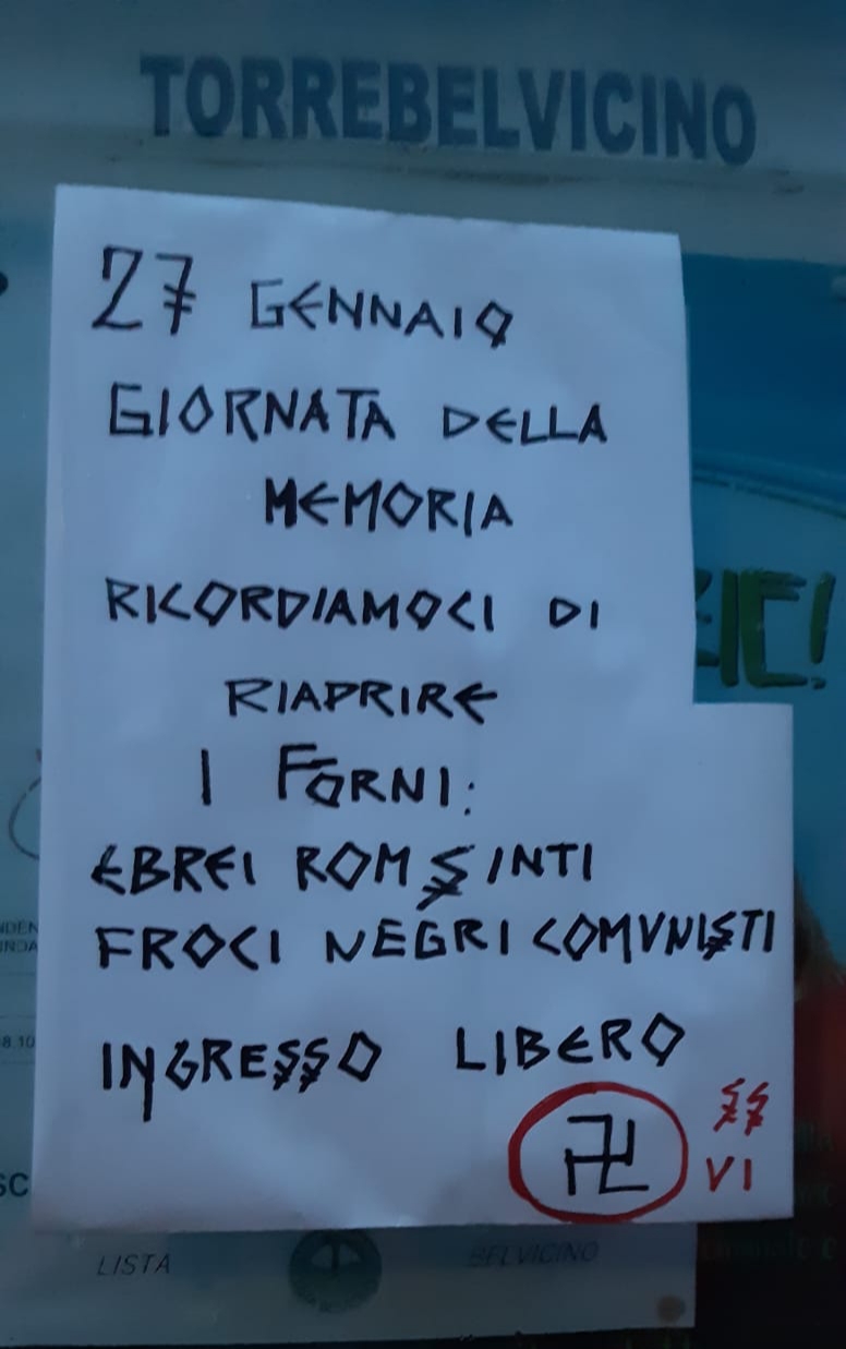 I rappresentanti dei gruppi Consiliari di Centrosinistra della Città di Vicenza condannano l’ennesimo atto perpetrato, per mano di ignoti, a Torrebelvicino nella notte del ricordo della Shoah e di tutti i deportati nei campi di sterminio nazisti.