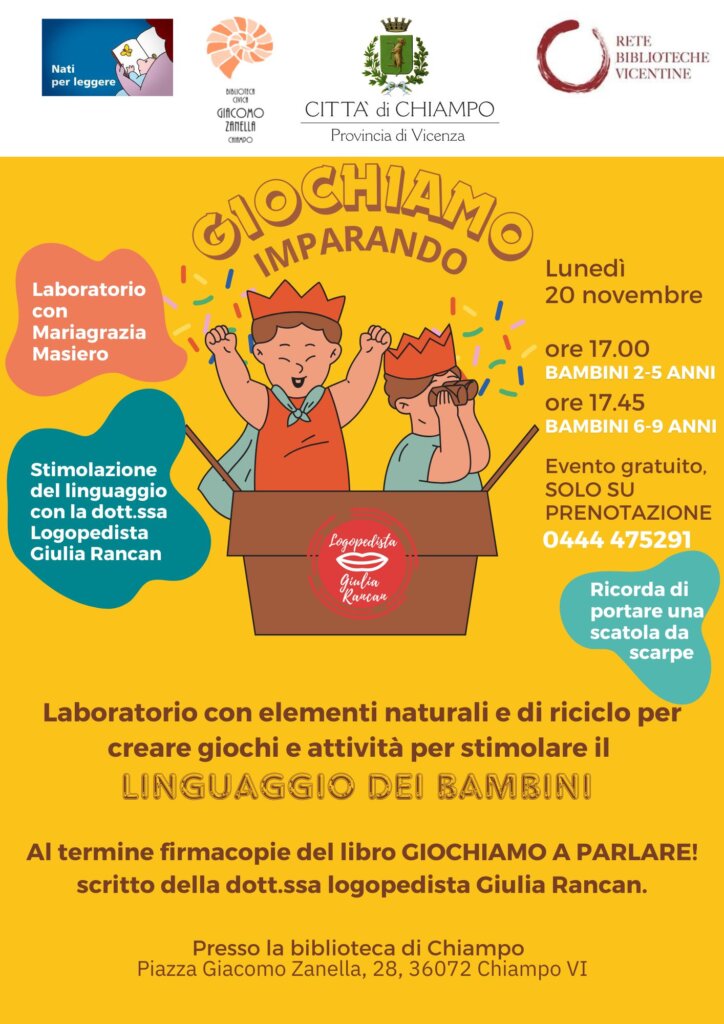 Anche Chiampo aderisce con una serie di iniziative alla settimana di lettura ‘Nati per leggere’. L’assessore alla Cultura Sofia Bertoli ci parla delle iniziative organizzate in biblioteca per i più piccoli. Sotto: le locandine