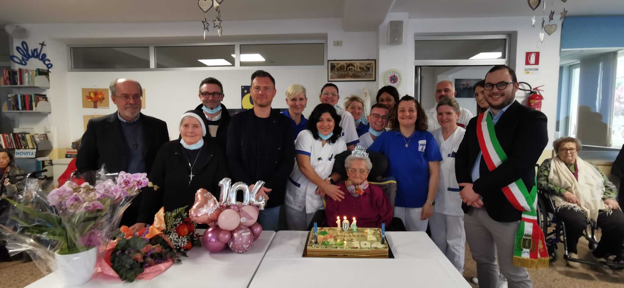Grande festa questa mattina all’Ipab S. Antonio Chiampo e Alta Valle per i 104 anni di Rosa Groppo, ospite della struttura da nove anni.