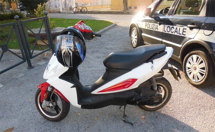Giravano in scooter per la città senza patente e senza documenti. All’alt degli agenti della polizia locale, però, si è scoperto che non era tutto: il mezzo era anche stato rubato. E’ successo a Chiuppano lo scorso sabato, poco dopo le 16:00. Una pattuglia della Polizia Locale Nordest Vicentino, impegnata in un posto di controllo nella centralissima via Roma, ha fermato i due ragazzi a bordo dello scooter Malaguti F12, alla guida F.S., 21enne italiano residente a Thiene. A seguito dei controlli, gli agenti hanno scoperto che il conducente non solo non era in possesso della patente o del patentino, perchè non li aveva mai conseguiti, ma anche dei documenti di guida e di circolazione, perché il ciclomotore era stato rubato in stazione a Thiene, lo scorso 27 settembre.