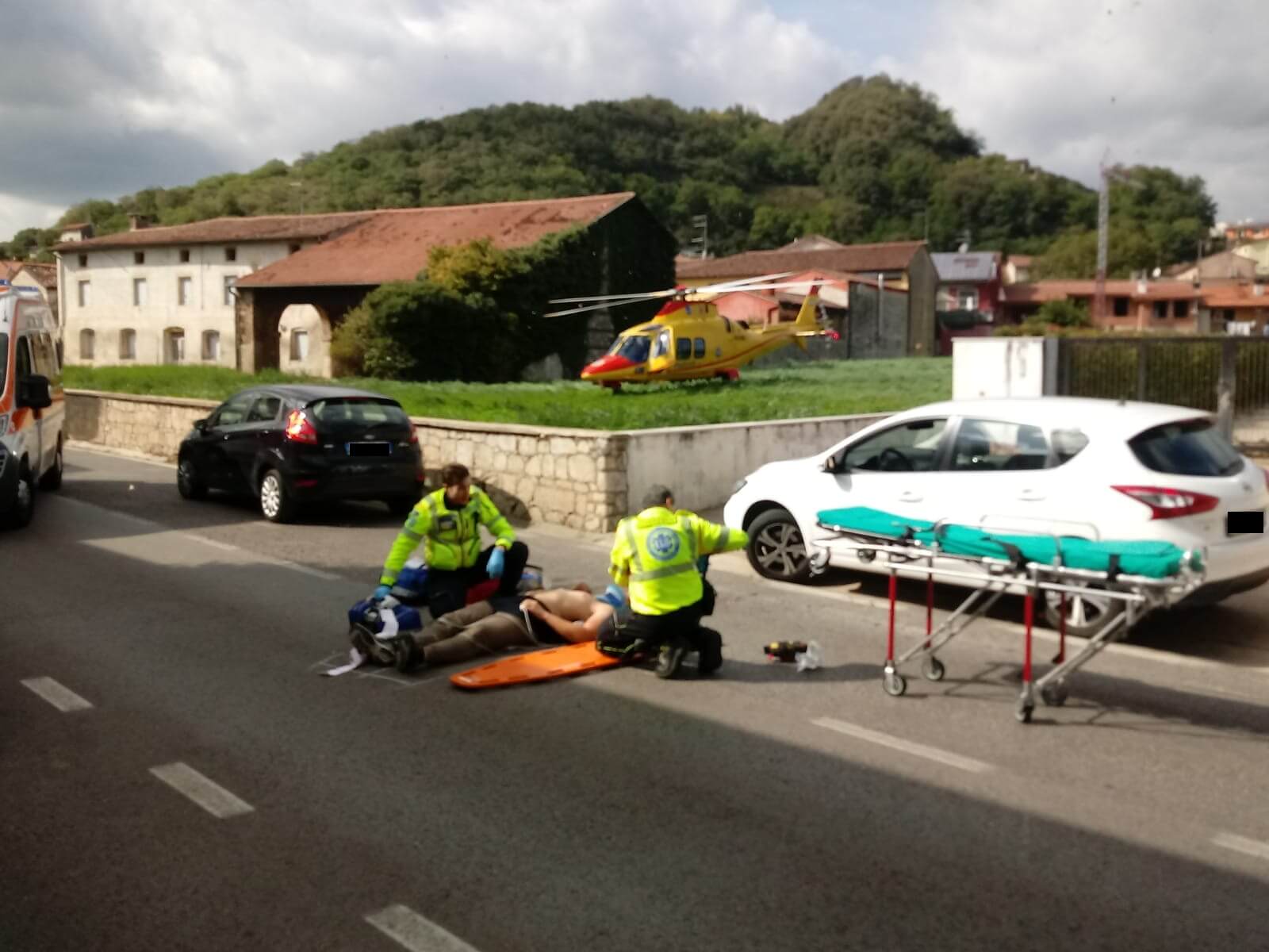 Incidente oggi pomeriggio poco prima delle 14 tra via Matteotti e via Circonvallazione a Montecchio. Per cause in corso di accertamento un ciclista 20enne in sella alla sua bici è caduto nell’opposta corsia di marcia, finendo contro una Ford Fiesta che stava viaggiando in direzione Montecchio. Il ragazzo è stato trasportato a Vicenza con l’elisoccorso; gravi le sue condizioni.