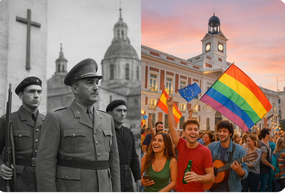 Il Caudillo, che sognava una nazione disciplinata e cattolica, oggi troverebbe un Paese dove si marcia per i diritti LGBTQ+, dove le Regioni rivendicano autonomia e persino indipendenza, e dove i preti sono più impegnati su TikTok che nelle sacrestie.