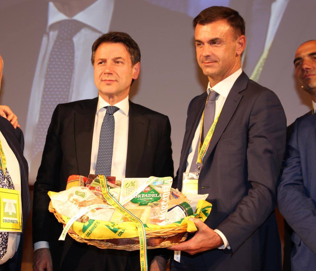 Coldiretti consegna al premier Conte un cesto simbolo del falso Made in Italy