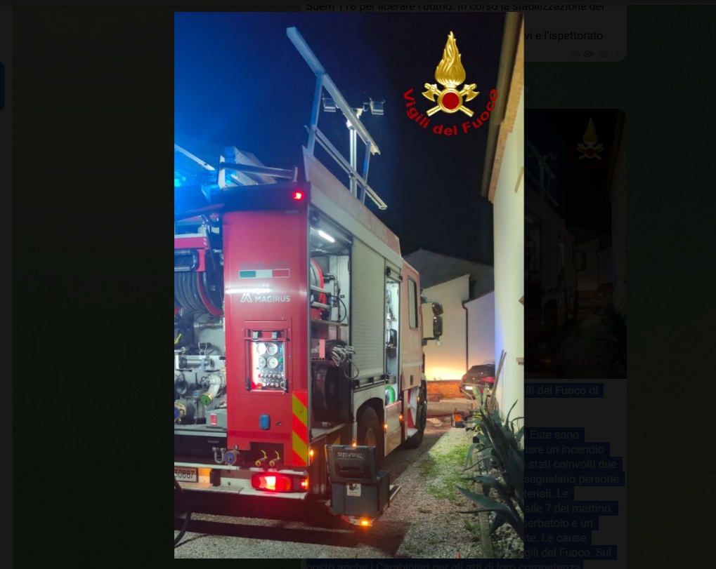 Fortunatamente non si registrano persone ferite: i danni sono esclusivamente materiali. Le operazioni di spegnimento, che hanno impegnato un’autopompa serbatoio e un’autobotte serbatoio del distaccamento di Este, si sono concluse intorno alle 7.