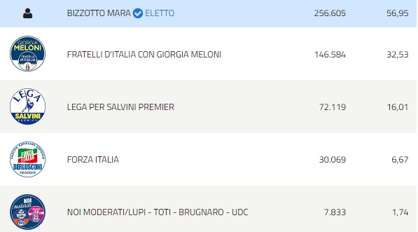 Con l’arrivo dei dati definitivi è possibile anche tracciare il voto territoriale. Ecco le schede relative alla Provincia di Vicenza. Per ora risultano certamente eletti: Silvio Giovina (FdI) e Maria Cristina Caretta (FdI) alla Camera e Mara Bizzotto (Lega) al Senato. In assegnazione gli altri seggi. Sono dati per quasi certi: Pierantonio Zanettin (Forza Italia), Erika Stefani (Lega) ed Erik Pretto (Lega). Papabile anche Mattia Ierardi (FdI) visto il risultato di Fratelli d’Italia