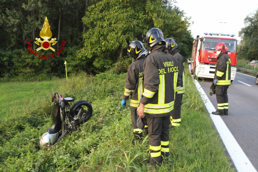 Alle 18:50 di venerdì, i vigili del fuoco sono intervenuti in Viale del Sole a Vicenza per soccorrere un motociclista finito in un fossato sotto il piano stradale dopo aver perso il controllo della moto che viaggiava verso l’autostrada: ferito un uomo. I pompieri hanno collaborato con il personale sanitario del SUEM nel recupero del centauro finito in mezzo ai rovi. Il motociclista è stato stabilizzato dai sanitari e subito dopo trasferito in ospedale. La moto si è letteralmente impiantata verticalmente dopo aver prima toccato un muretto di cemento. Sul posto la polizia locale per i rilievi del sinistro.