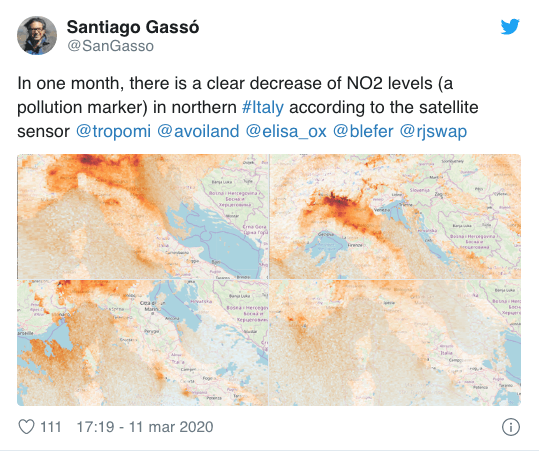 In Italia è successo quello che era accaduto in Cina con le restrizioni imposte dal governo: lo smog è diminuito. Soprattutto nelle zone più inquinate. Dopo quasi un mese di restrizioni, zone rosse e chiusure di scuole e attività imposte dal coronavirus, l’inquinamento nel nord Italia è decisamente calato, come si vede nella foto pubblicata ieri da uno studioso della Nasa.
