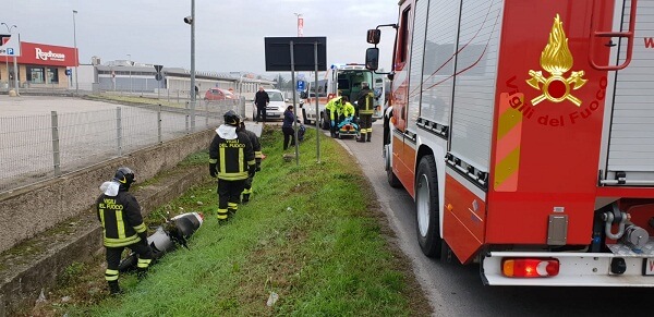 Questa mattina, poco prima delle 8, i vigili del fuoco sono intervenuti a Montecchio Maggiore in via Bruschi quasi all’intersezione con la rotatoria di viale Trieste per soccorrere uno scooterista finito in un fossato dopo la perdita di controllo del mezzo.