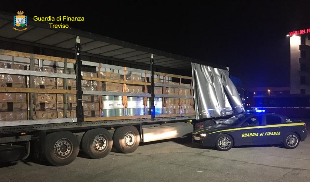 Le Fiamme Gialle del Comando Provinciale di Treviso hanno concluso un’operazione, denominata convenzionalmente “Olio Extra”, che ha consentito di portare alla luce il contrabbando, dall’Est Europa all’Italia, di 240 tonnellate di olio motore per autoveicoli, denunciando tre persone, amministratori di società attive nel commercio di accessori e ricambi per auto, con sedi tra le province di Roma e Latina.