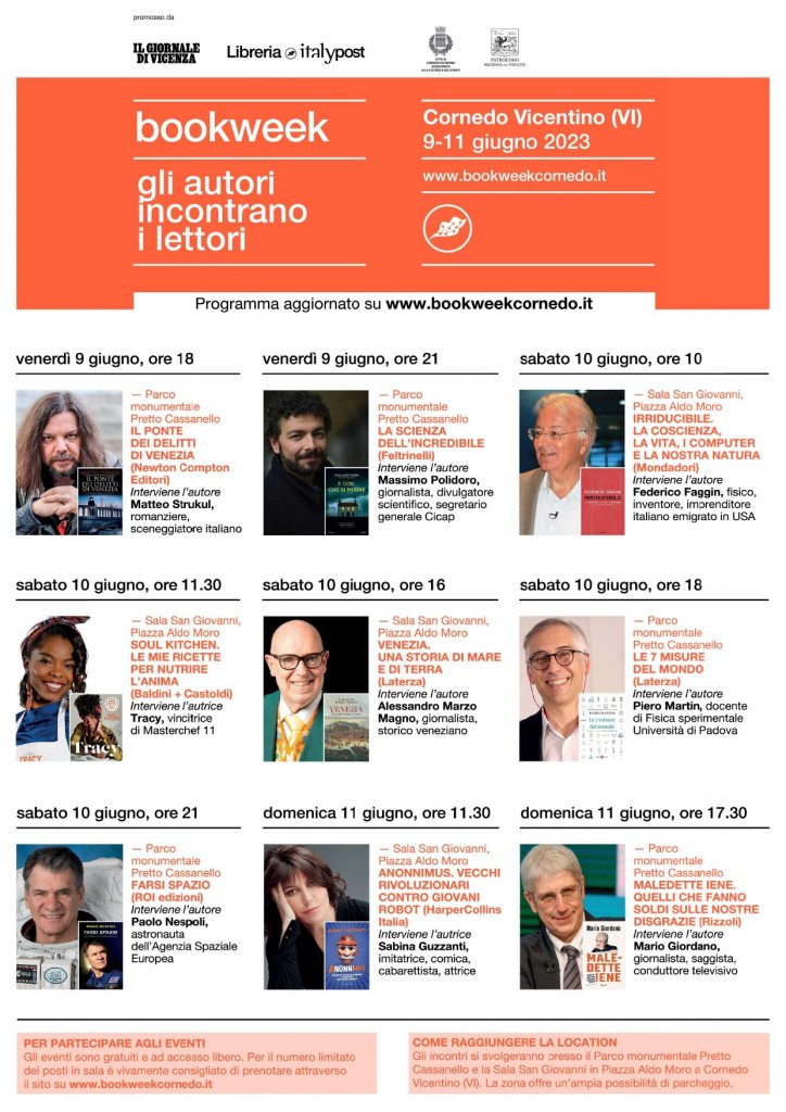 BOOKWEEK, CI SIAMO! Al via la rassegna che porta tanti importanti ospiti a Cornedo (sotto: la locandina con tutti gli appuntamenti)