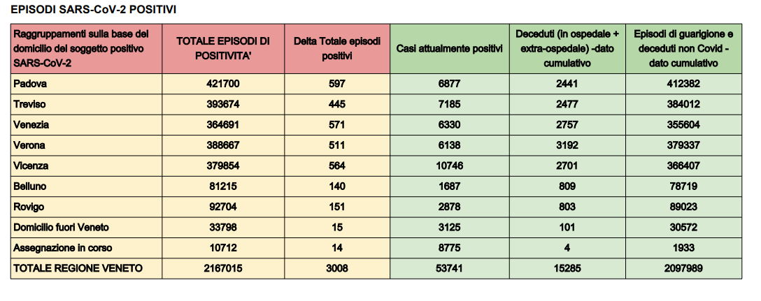 Resta anche oggi sopra quota 3.000 (esattamente 3.035) il numero di nuovi contagi Covid registrato in Veneto in 24 ore.
