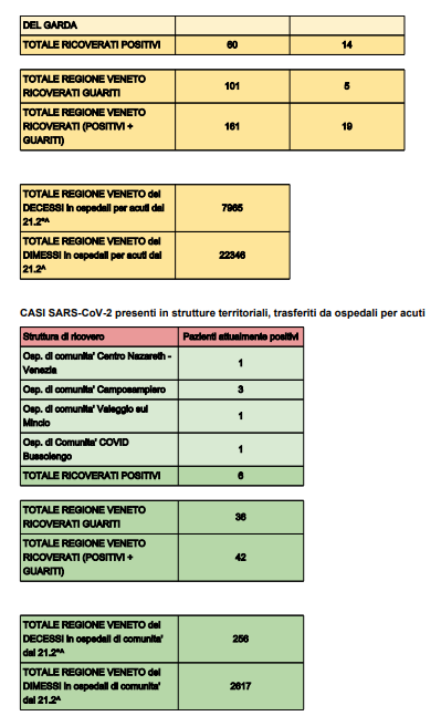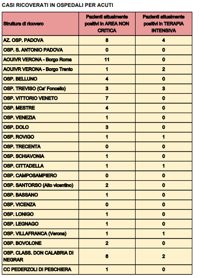 Di seguito, i dati degli ospedali veneti.