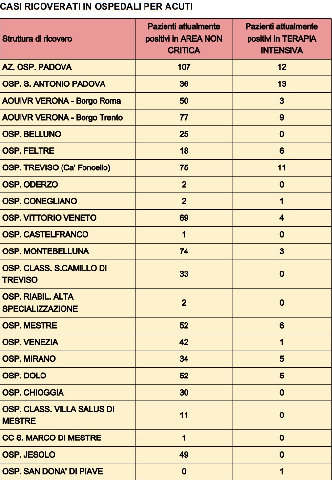 Migliora ancora la situazione ospedaliera: numeri in calo sia per quanto riguarda l’area medica (771 ricoverati, 9 in meno rispetto a ieri) sia nelle terapie intensive (29, -3).