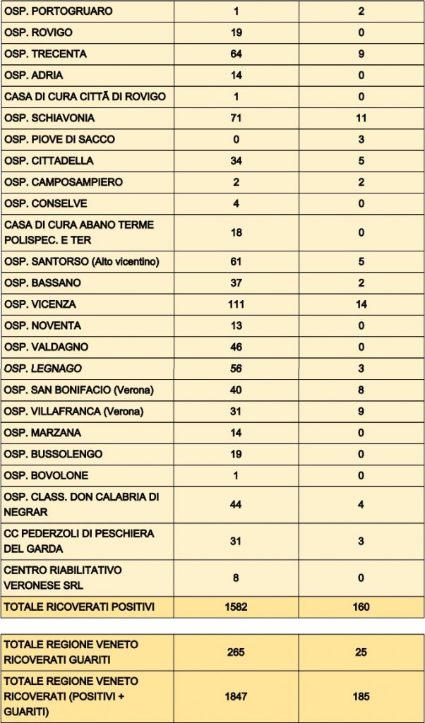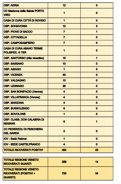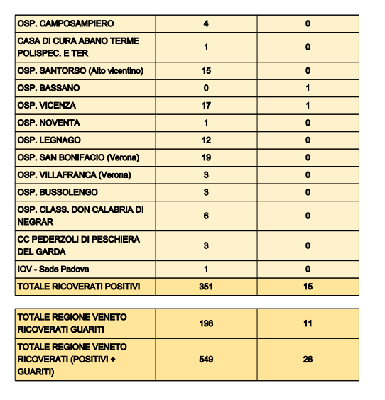 COVID VENETO – Vicenza la città più colpita negli ultimi giorni, ma si liberano i reparti di area medica