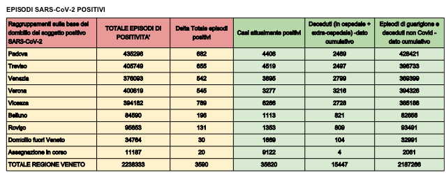 COVID VENETO – Nelle ultime 24 ore 3.590 nuovi contagi e 3 morti