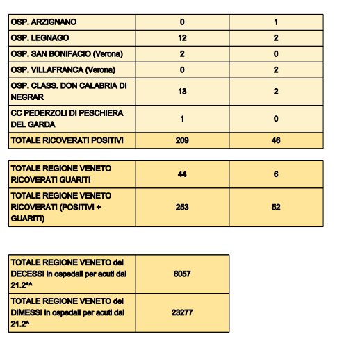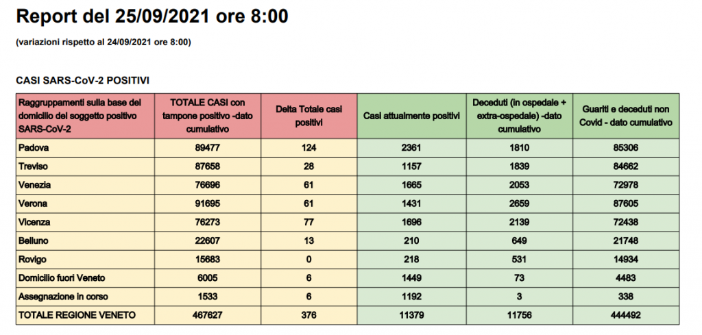 La Regione Veneto ha pubblicato i dati di oggi relativi ai nuovi contagi da Covid-19.