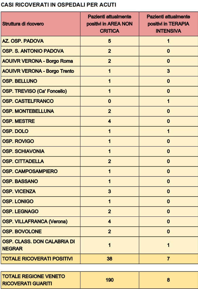 COVID VENETO – I dati di oggi: 76 contagiati, 1 decesso, in calo i ricoverati