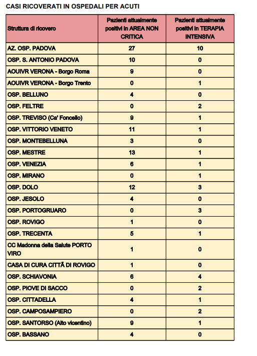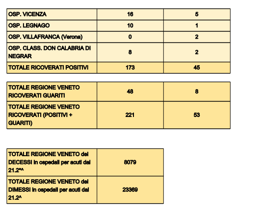 COVID VENETO – Diminuiscono i positivi, stabili i ricoveri