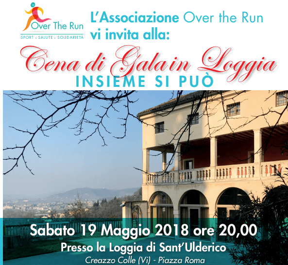 Una cena di gala per la Fondazione San Bortolo Onlus di Vicenza, in particolare per i reparti di urologia e rianimazione anestesia.“Insieme si può!” si terrà sabato 19 maggio 2018 a Creazzo in Piazza Roma, a cura dell’associazione Over the Run.
